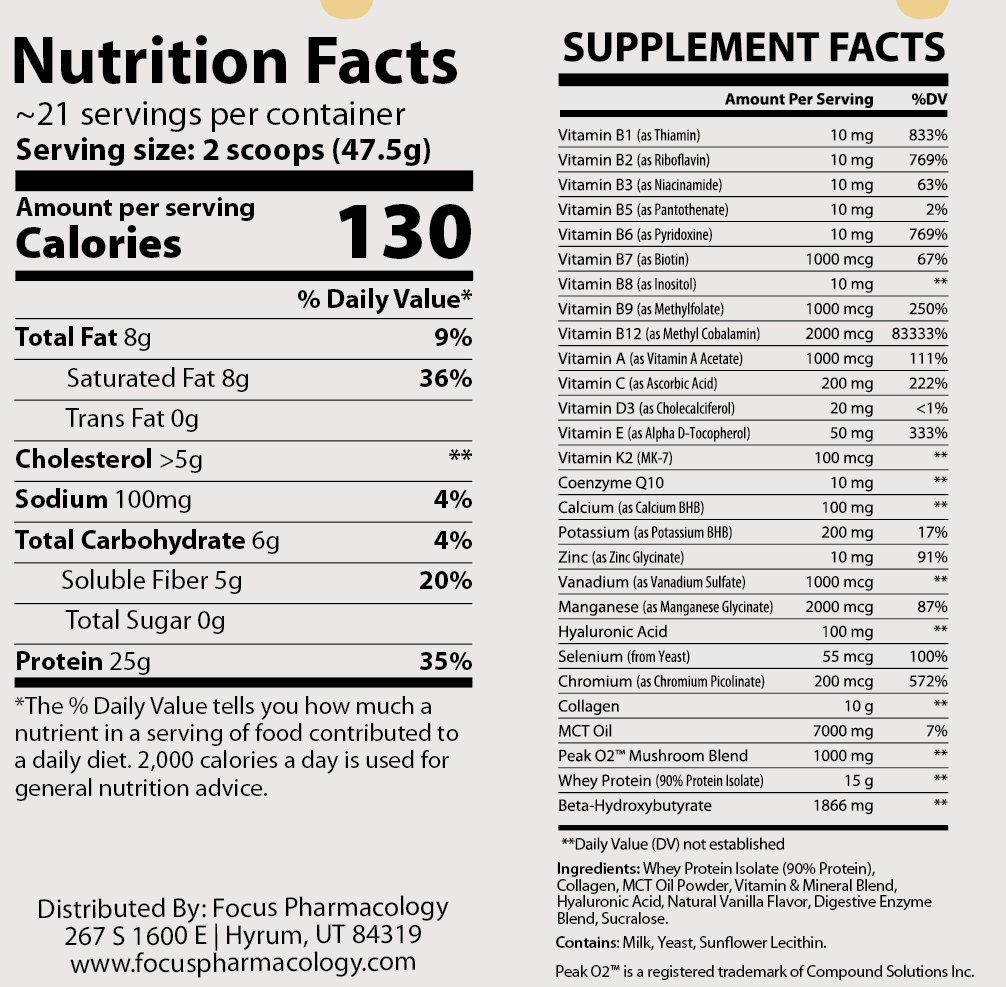 Focus Pharmacology GLP-1 Support Whey Protein Isolate + Collagen + MCT Oil